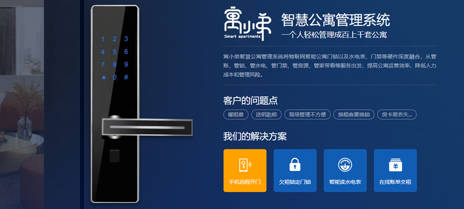 以上就是【 長租公寓saas管理系統有哪些品牌】http://m.boyjt.cn/xwzx/cjwt/279.html的相關內容, 文本由寓小弟智能鎖整理發布,如需轉載,請帶上本站鏈接。