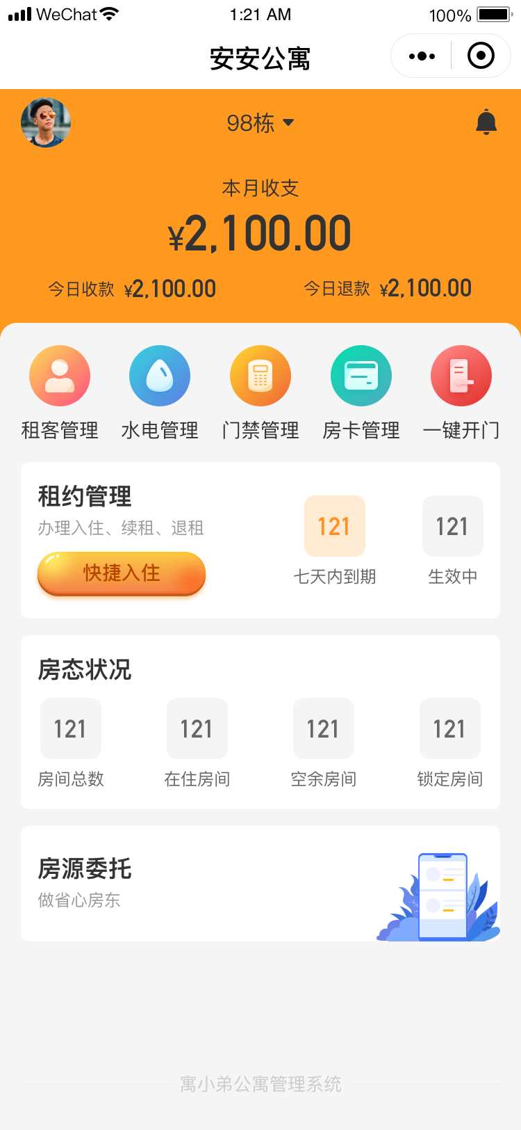 你們公司的那個公寓管理系統好強大啊,安裝了智能鎖后,我現在用微信就能觀察幾十個房間入駐情況,還能催租,又不用上門跑,真爽!