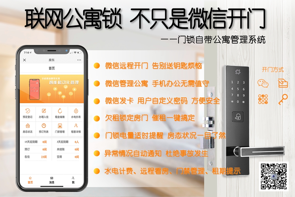 你們公司的那個公寓管理系統好強大啊,安裝了智能鎖后,我現在用微信就能觀察幾十個房間入駐情況,還能催租,又不用上門跑,真爽!
